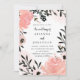 These beautiful wedding invitations feature trendy blush pink and black flowers and leaves.