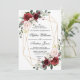 Marsala and blush pink rose flowers decorate a thin gold frame.