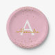 Blush Pink and Gold Foil Confetti Monogram Paper Plate