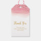 Elevate your celebration with this elegant pink and gold thank you gift tag. Featuring soft watercolor blush waves layered with delicate gold confetti accents, this design brings a modern yet timeless touch to any event.