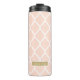 Blush Pink and Gold Moroccan Quatrefoil Monogram Thermal Tumbler