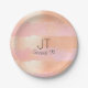 Personalise this special occasion paper plate done in a pretty blush pink, with golden brushed on stripes. Custom monogram and text, in the middle of the plate, is ready to personalise. Great for birthdays, weddings, bridal showers and more.