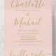 Blush Pink And Gold Script Minimalist Wedding All In One Invitation