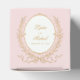 This small favour box has a blush pink exterior and a decorative square frame on each side. Your names and wedding date are surrounded by a laurel wreath on the top flap in a golden  font. This favour box coordinates with the other products in the Vintage Pink Paris Glam Wedding Collection.