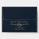 Add a refined touch to your wedding suite with this elegant navy blue and blush pink 5x7 envelope. The design features a romantic gold rope heart and modern calligraphy return address, combining timeless charm with a contemporary aesthetic. Ideal for mailing wedding invitations in style, this envelope offers both sophistication and personalisation. A perfect match for modern, romantic, or navy-themed weddings.