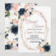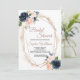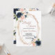 Chic bridal shower invitation with a gold frame and watercolor flowers in burgundy marsala, blush pink and navy blue, with green botanical foliage and eucalyptus leaves. A beautiful choice in lush, saturated jewel tone colours for fall or winter celebrations.