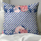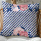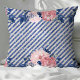 Blush Pink and Navy Glitter Stripes Floral Cushion