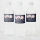Your guests want to remember your special day. Help them with these elegant, stylish water bottle labels with blush pink and navy watercolor flowers on a navy background with pink text. Personalise with your own information.