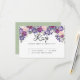 Beautiful plum roses and blush pink flowers are nestled into purple wildflowers and sage green leaves. RSVP is written in a flowing script font. The back of the RSVP card is a soft sage green leaf pattern.