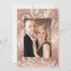 Trendy blush pink and white roses wedding invitation with accents of rose gold designed to be quickly and easily customised to your event specifics. The photo on the reverse is optional. If you would rather remove it, scroll down to the bottom of "Personalise this template" and click on "Edit Using Design Tool". In the Design Tool you can edit, scale, delete or move any text or design elements you wish.