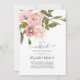 Trendy blush pink and rose gold floral long distance virtual wedding invitation with elegant typography.