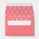 Blush pink and white nautical anchor patterned A6 envelope. The design features a white nautical anchor pattern on blush pink on the inside the envelope. The exterior of the envelope is blush pink.