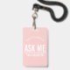 Blush Pink Ask me I'm a volunteer id badge