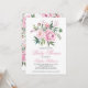 Customizable baby shower invitation featuring hand-drawn watercolor illustrations of pink roses, baby's breath, leaves and foliage. Perfect for It's a Girl baby showers and spring baby showers.