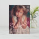 Sweet blush pink "Believe" Christmas typography design photo greeting. Just add your unique photo, greeting, name(s) or family name, and the year. Back features a grey distressed lace look background overlaid with blush pink snowflakes. Design by Holiday Hearts Designs (rights reserved) with photo template via Pixabay.