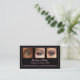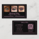 Elevate your professional image with this sleek black business card designed for the modern makeup artist. A delicate blush pink border adds a touch of understated elegance. Three photo spaces across the top let you showcase your artistry or favorite client looks. On the back, list all your social media and add your URL to the QR code. This card promotes your beauty brand with style and confidence.