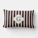 Blush Pink, Black Stripe White Monogram Label Lumbar Cushion