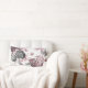 Blush pink and white throw pillow featuring a vintage botanical floral pattern in black and white and in blush pink transposed on top of one another.