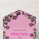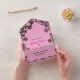 This elegant botanical wedding invitation is perfect for a modern floral wedding. The simple design features a botanical garden of purple and magenta roses and green leaves with elegant black typography on a blush pink background.