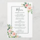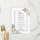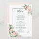 This wedding menu features painted watercolor flowers in blush pink, white and green foliage with a rectangular frame. For more advanced customisation of this design, please click the "Customise further" link.