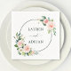 This wedding paper napkin features painted watercolor flowers in blush pink, white, and green foliage with a circle frame. For more advanced customisation of this design, Please click the "Customise further" link.