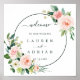 This wedding welcome sign features painted watercolor flowers in blush pink, white and green foliage with a circle frame. For more advanced customisation of this design, Please click the "Customise further" link. Matching items are also available.