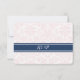 Wedding RSVP cards in elegant and contemporary light pastel blush pink, dark navy blue and white classic and chic floral vintage damask pattern. Customisable with your wedding details, available in many matching wedding products.