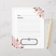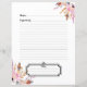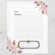 Matching paper sheet, insert for our 3-ring binders. A chic white background with pink florals, roses, sprigs and brown, golden feathers. Summer boho, bohemian style.