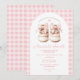 Blush Pink Bow Baby Shoes Gingham Arch Baby Shower Invitation