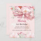 A girly blush pink background, decorated with a large pink bow and pink flowers. Text: She's a Cute One. Personalise and add a name and party details.