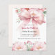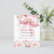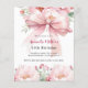 A white background, decorated with a large pink bow and pink flowers. Personalise and add a name and party details.