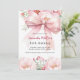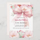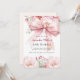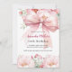 A white background, decorated with a large pink bow and pink flowers. Personalise and add a name and party details.