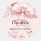 A girly blush pink background, decorated with a large pink bow and pink flowers. Text: Happy Birthday!. Personalise and add your first name, monogram initials and full name.