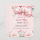 A girly blush pink background, decorated with a large pink bow and pink flowers. Personalise and add a name and party details.