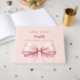 A blush pink background colour. Decorated with a large pink bow. Personalise and add your name, text.