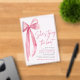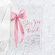The blush pink colour palette adds a touch of romance, while the delicate bow symbolises the tying of the knot in a beautiful union. The choice of fonts and layout complements the overall design, creating an invitation that is both classic and modern.