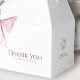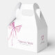 The back of the favour box continues the sophisticated theme with the same crisp white backdrop. A charming blush pink bow is thoughtfully placed, mirroring the beauty of the front design. Prominently displayed over this, you'll find the heartfelt "Thank you" in elegant, bold typography, beautifully complemented by the smaller font "for celebrating with us!". This ensures your message of appreciation and the striking design are visible from multiple angles, creating a truly cohesive favour.