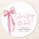 Blush Pink Bow She's Tying the Knot Bridal Shower Round Paper Coaster