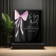The bold black background provides a dramatic contrast, making the soft pink of the bow appear even more vibrant and the white script incredibly clear. This high-contrast design exudes a sense of modern elegance and glamourous charm, ensuring your bridal shower décor makes a memorable impact. The subtle texture of the watercolor bow adds an artistic touch that softens the overall bold aesthetic.