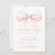 This elegant invitation features a charming blush pink bow and elegant script font.