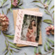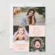 Elegant blush pink graduation invitation personalised with one photo on the cover and three more photo on the back. Double sided graduation invitation with a light pink background. 2 in 1 graduation announcement and invitation personalised with photos and the graduate's name in brass.
