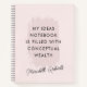 Blush Pink Brush Stroke Motivational Quote Notebook... On a blush pink painterly brush stroke overlaid on a delicate pale pink background is this motivational saying: "My ideas notebook is filled with conceptual wealth." Beneath the graphic and text is a place for your monogrammed handwriting script signature so you can "own" these words. Saying and design by Barbara Casey.