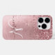 Blush Pink Brushed Metal Glitter Monogram Name Case-Mate iPhone Case