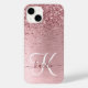 Blush Pink Brushed Metal Glitter Monogram Name Case-Mate iPhone Case