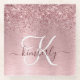 Blush Pink Brushed Metal Glitter Monogram Name Glass Coaster