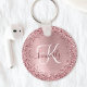 Blush Pink Brushed Metal Glitter Monogram Name Key Ring