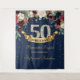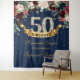 Blush pink burgundy navy floral boho 50th birthday tapestry backdrop party banner, with deep red merlot florals and blush pink and navy flowers, and gold glitter sparkles, easy to personalised, COntact me for other AGE ot for customisation. Blush Roses ©
