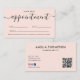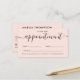 Keep your clients organised and stylish with our personalised appointment card, designed in a minimalist blush pink colour. The elegant heading "Appointment" in modern calligraphy graces the front, creating a chic and professional look. Below, customise your promotional text to keep your brand top-of-mind. On the back, include your contact details and a QR code for easy access to your services. Perfect for hair stylists, makeup artists, spa professionals, and beauty salons, this appointment card is both functional and fashionable. Ready to elevate your brand?