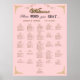 Why let the decor have all the fun when your seating plan can look this good. A soft blush pink backdrop with shimmering champagne gold accents sets a romantic upscale tone while graceful script calligraphy and bold easy to read names keep everything polished. The alphabetical layout with table numbers makes finding a seat stress free so guests spend less time searching and more time celebrating. From glamourous ballroom receptions to rustic vineyard weddings or chic garden soirees this seating poster blends seamlessly into any style. Proof that even the most practical detail can pull double duty guiding your guests and adding a little sparkle to the celebration.