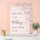 Blush pink cherry blossom floral transparent wedding welcome reception board.